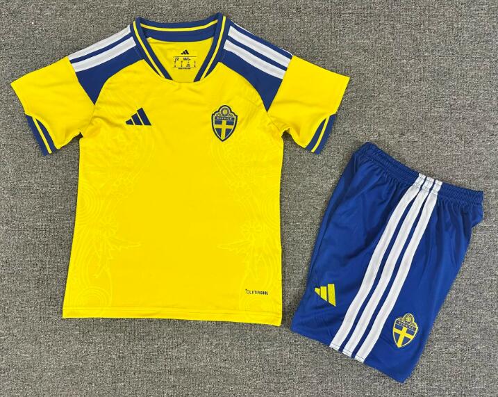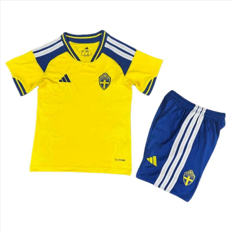 26-27 kids kit Sweden Home soccer jersey-Fans Version