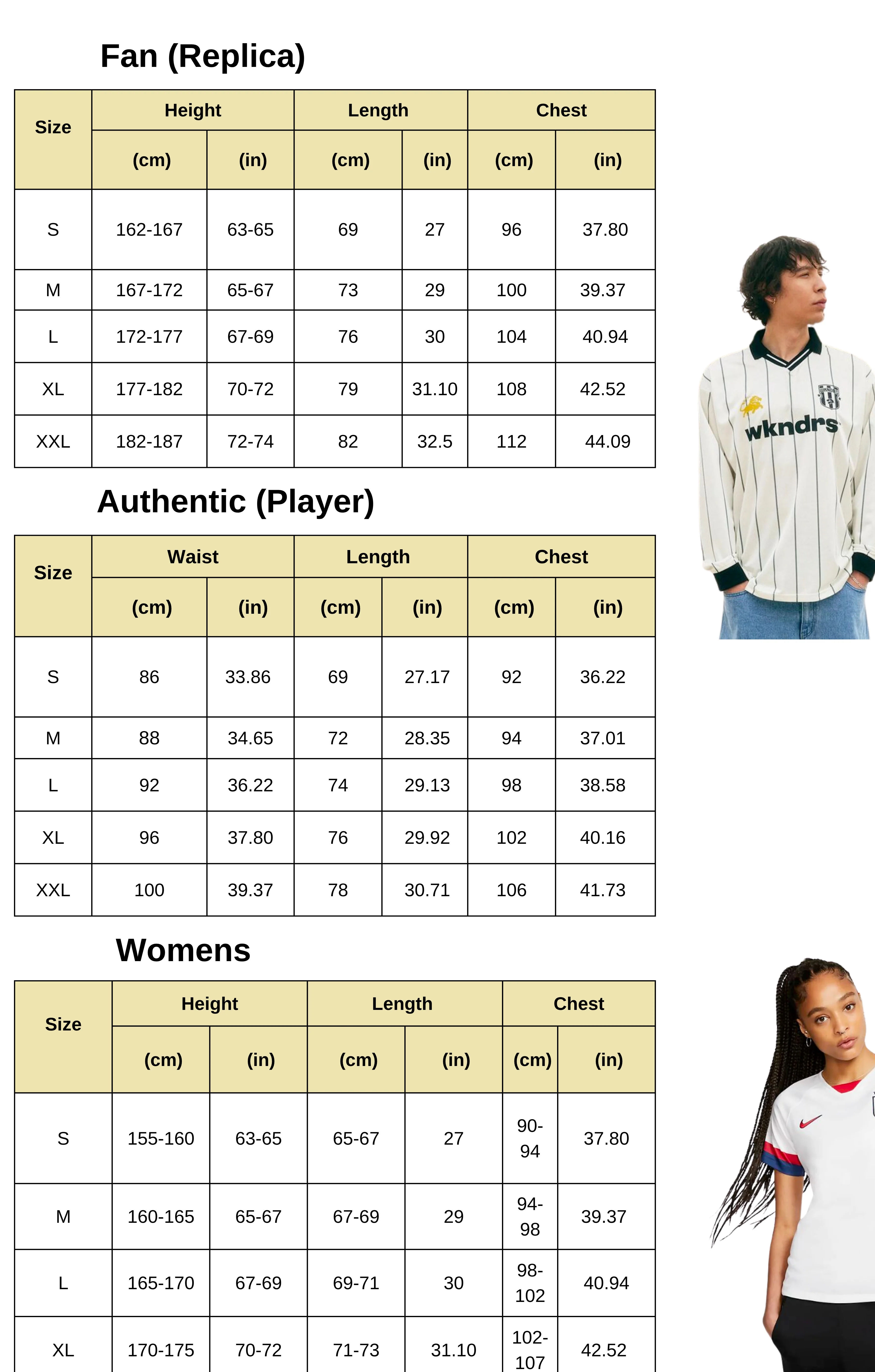 Fans Version Size Guide: